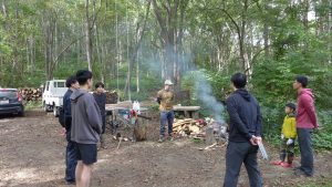 樹木を間伐伐採し、販売(まきなど) 白樺の木 付加価値 機械を使用せずきり、商業施設のディスプレイとして販売