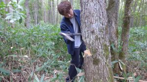 実技 昔ながらの道具を使用し、ハンノキ(榛の木)を伐採 2.30m